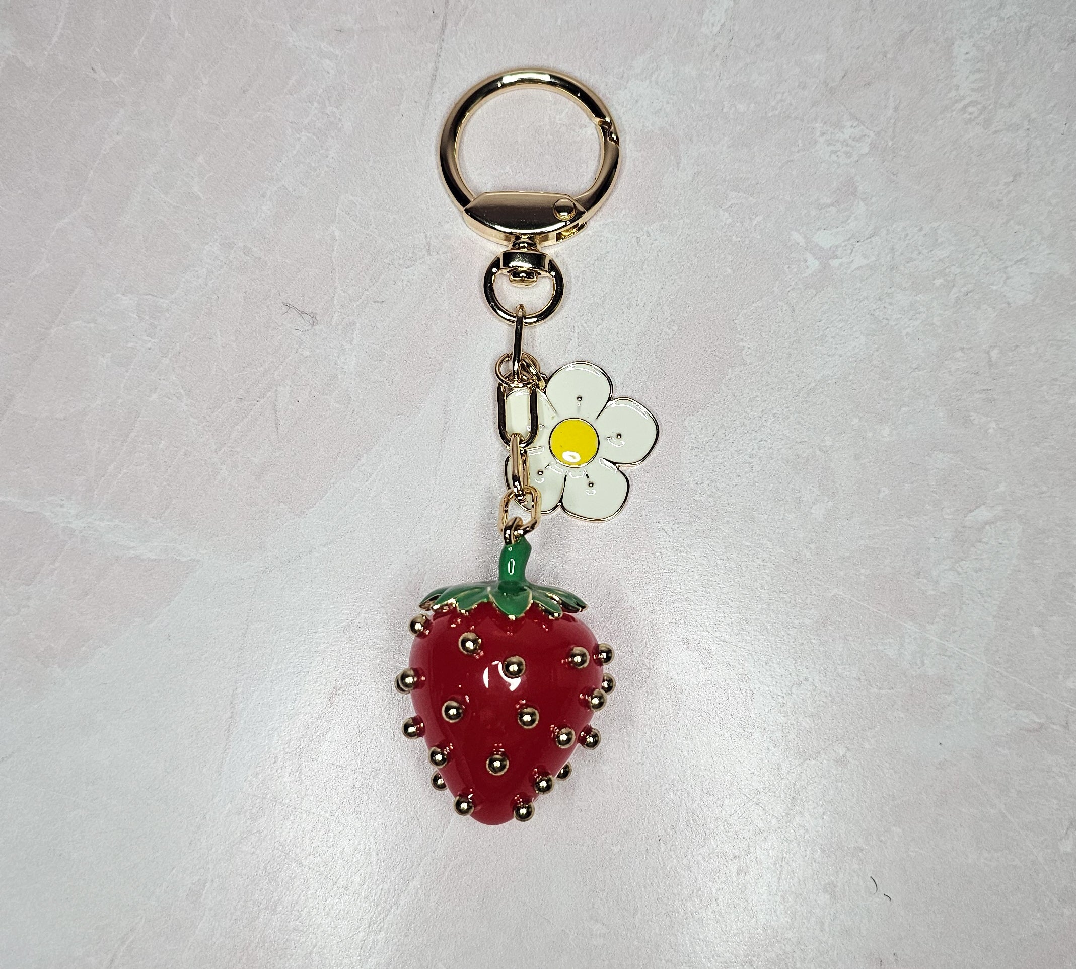 Description Our keychain is the perfect accessory for anyone who wants to add a touch of sweetness to their keys. The strawberry design is both adorable and functional, making it easy to identify your keys at a glance. Add this keychain to your collection and never lose your keys again!