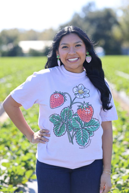 - Get ready to berry your worries with the Blooming Tee! Featuring a giant strawberry plant graphic, it's like wearing a piece of summer on your shirt. Perfect for making a fruit-tastic statement while keeping your style fresh and fruity. Why blend in when you can stand out, right? 🍓