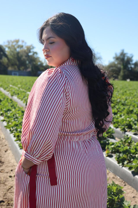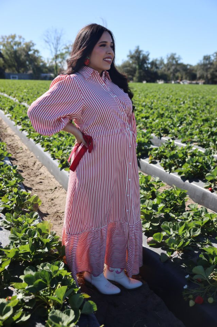 - Elevate your style with the Kathy Dress. This Striped Contrast Side Ribbon Midi Dress features a chic and sophisticated design, with a contrasting side ribbon and stylish collar detail. The flowy bubble sleeves add a touch of femininity to this elegant midi dress. Perfect for any occasion, it's a must-have for any fashionable wardrobe.