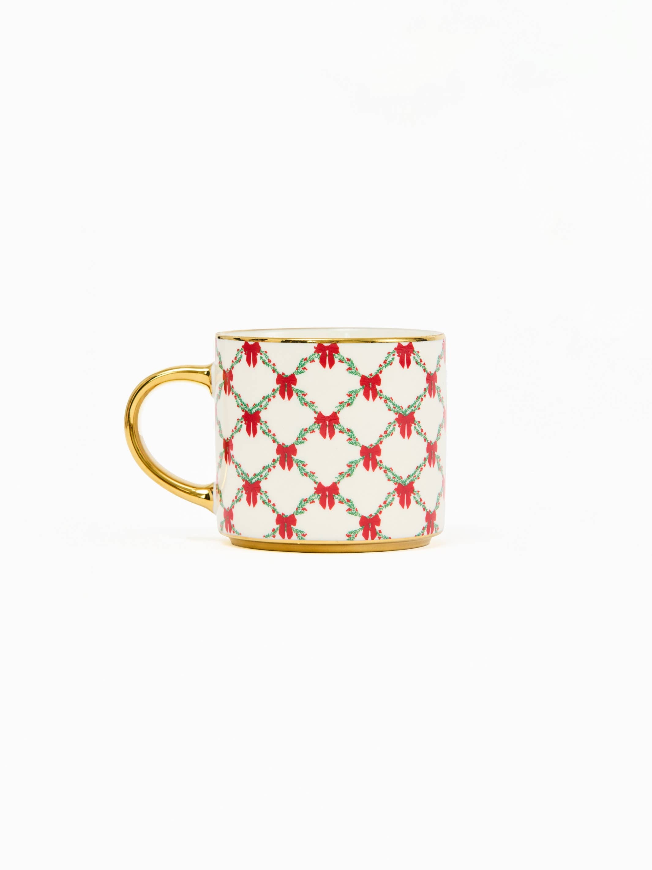 Enjoy your favorite holiday beverages in our Holiday Trellis Café Mug. Featuring our classic trellis design accented with delicate red bows, this mug brings timeless festive charm to every sip. With its comfortable size and elegant pattern, it’s perfect for cozy mornings, holiday gatherings, or gifting during the season.