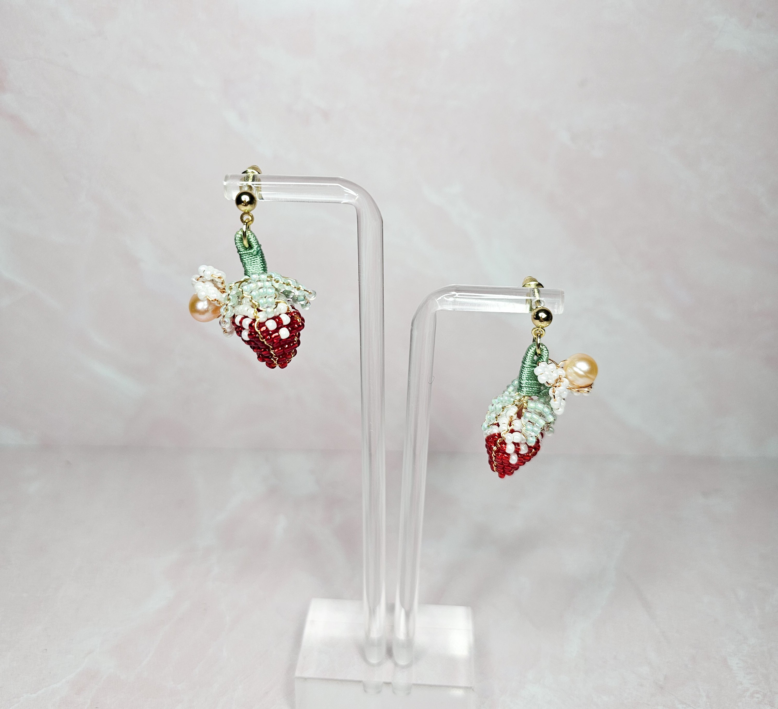 Expertly crafted with vibrant beaded strawberries, these earrings are a playful addition to any outfit. Adding a pop of color and a touch of whimsy, they are perfect for those seeking a fun and unique accessory. Handmade with love, they are sure to become a cherished addition to your jewelry collection.