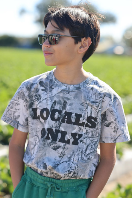 - The Locals Only Youth Tee features a camouflage design complemented by the print "Locals Only Plant City, FL." Made from high-quality materials, this tee offers comfort and durability for active children. Its unique design may foster community pride and connection among local youth.
