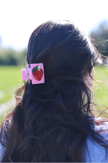Enhance your hairstyle with our Lovely Hair Clip. This beaded hair clip features adorable strawberries on both sides, adding a touch of charm to any look. Expertly crafted for a secure hold, this clip is the perfect accessory for effortless style.