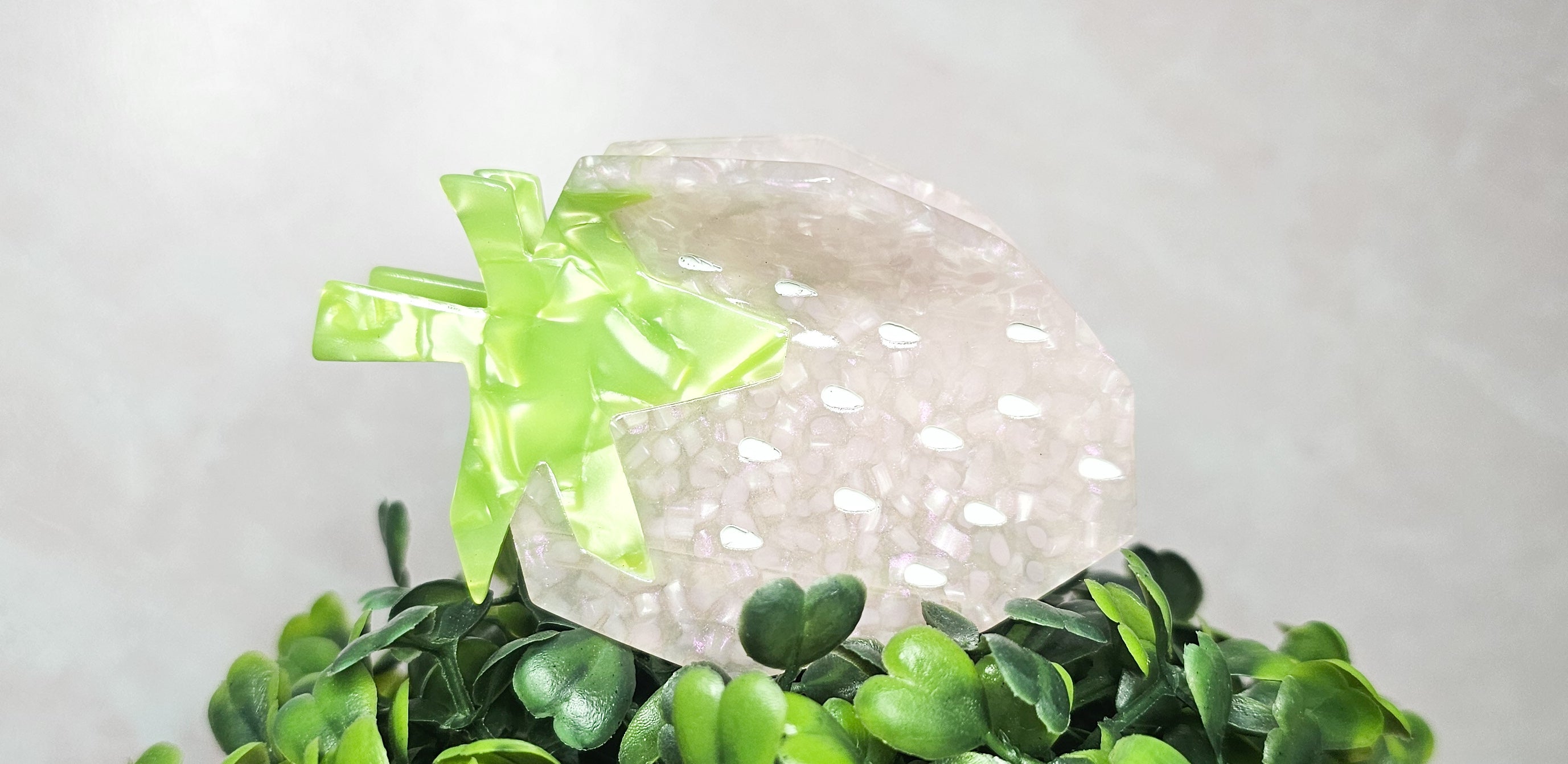• Introducing the So Sweet Claw Clip! This pastel strawberry shaped clip is a must-have for any hair accessory collection. Its unique design adds a touch of sweetness to any hairstyle, while providing a secure hold. Elevate your look with this charming and functional accessory.