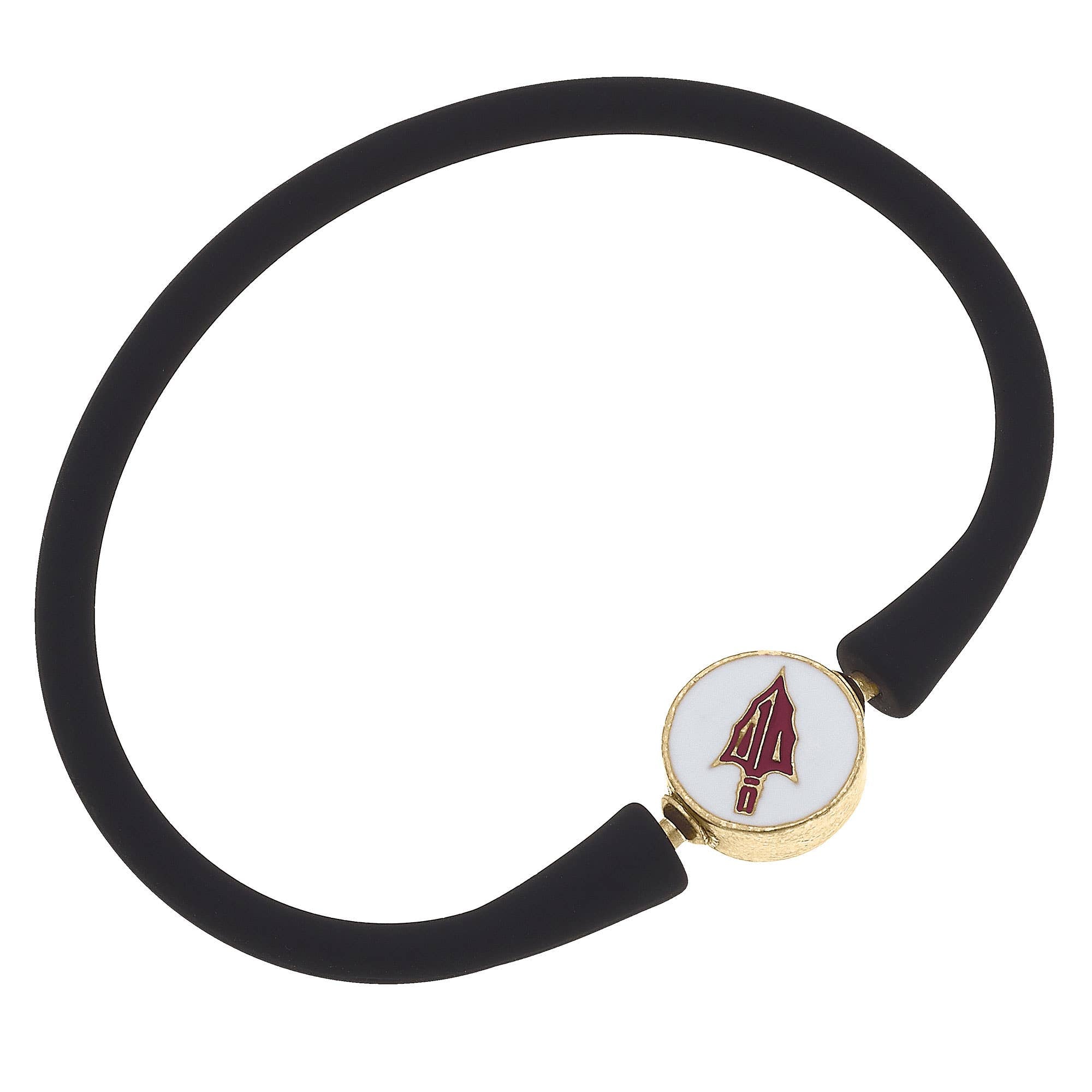 Description Our best-selling Bali Bracelet meets game-day chic! Put on the water-proof, silicone band by rolling on or opening and closing at the Florida State University logo charm.