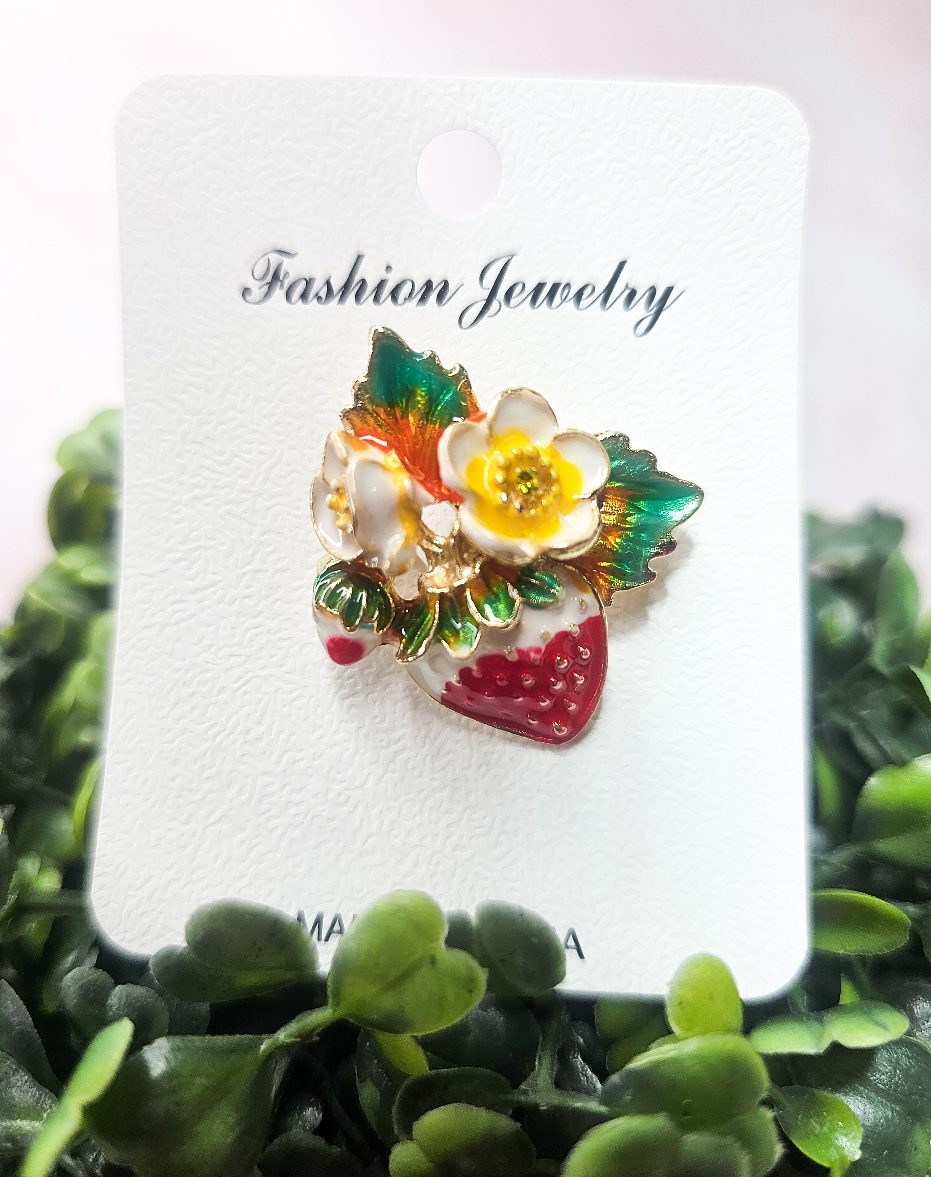 description: The Strawberry Pant Brooch features a uniquely designed strawberry motif, ideal for adding a touch of nature-inspired elegance to any attire. This accessory combines aesthetic appeal with versatility, making it suitable for various occasions. Its durable construction ensures long-lasting wear, while the distinctive design can enhance personal style.