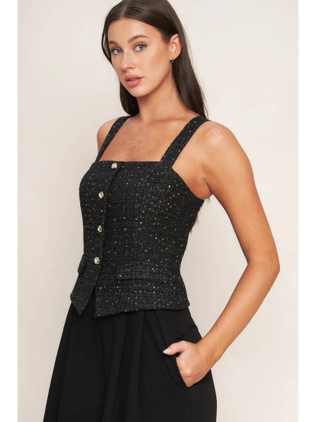 • Description:This black jumpsuit features a woven design and a square neckline, providing a stylish yet comfortable fit. Made with high-quality materials, it is perfect for any occasion. Get 10% off and elevate your wardrobe with this versatile jumpsuit.