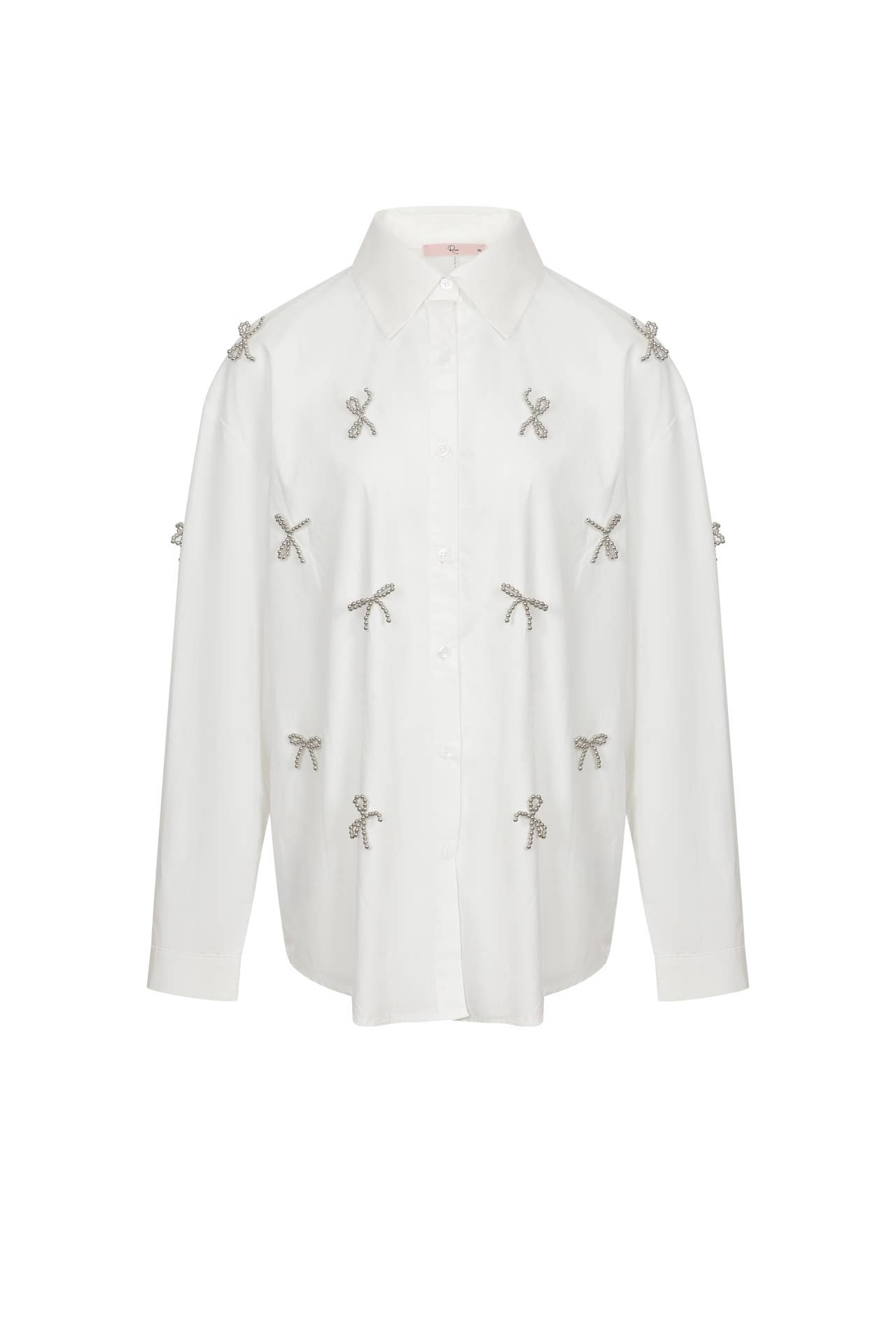 - Upgrade your wardrobe with the Lydia Top. This top offers both comfort and durability. The elegant design features a bow accent and a collared, button-up style. Stay stylish and comfortable with this versatile addition to your wardrobe.