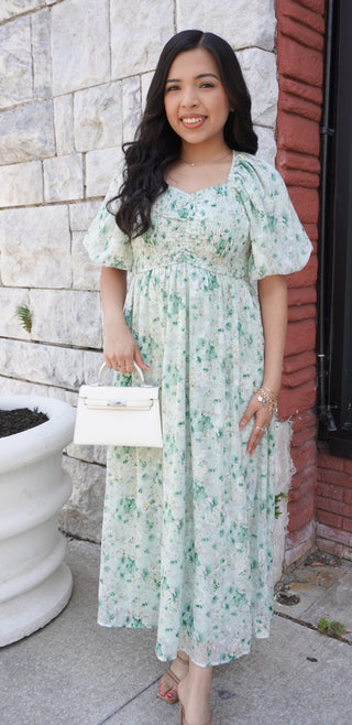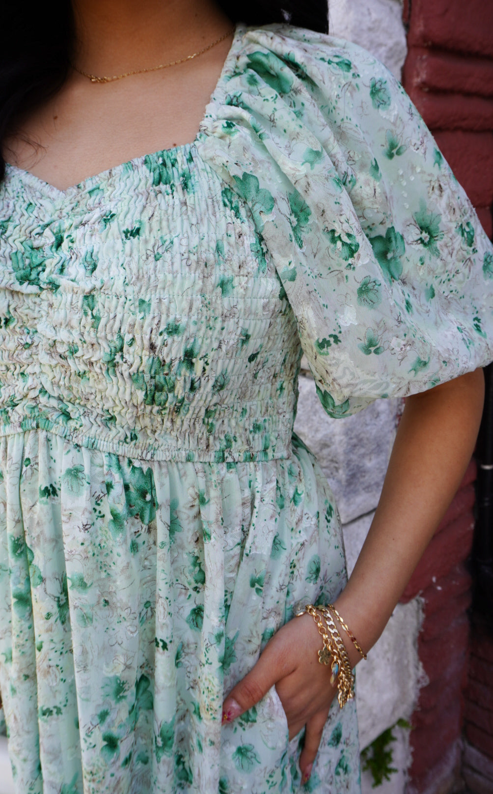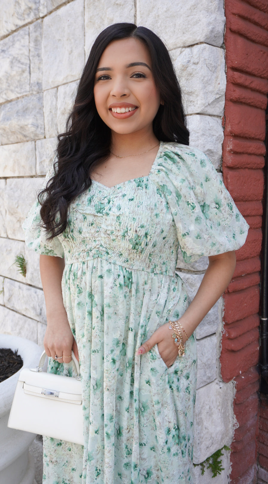 - Description:"The Anastasia Dress in Green Multi is a versatile and elegant choice for any occasion. With its convenient pocket and sleek silver details, it combines style and functionality. The long silhouette adds a touch of sophistication. Perfect for making a statement while staying comfortable."