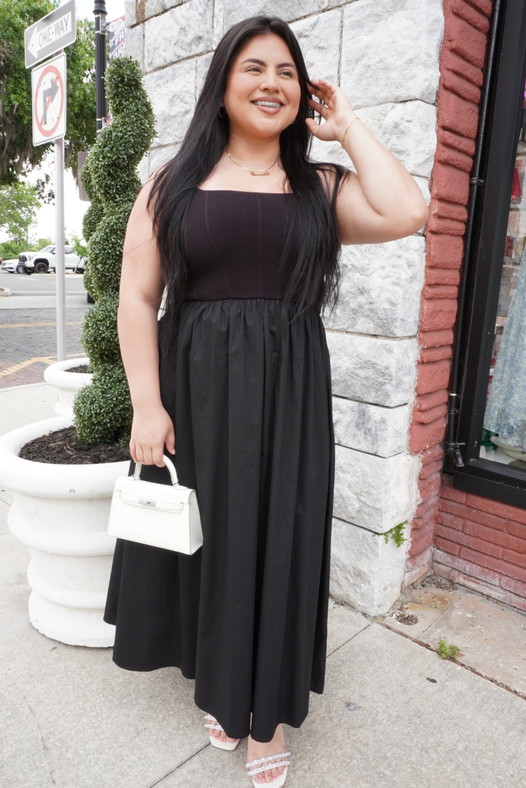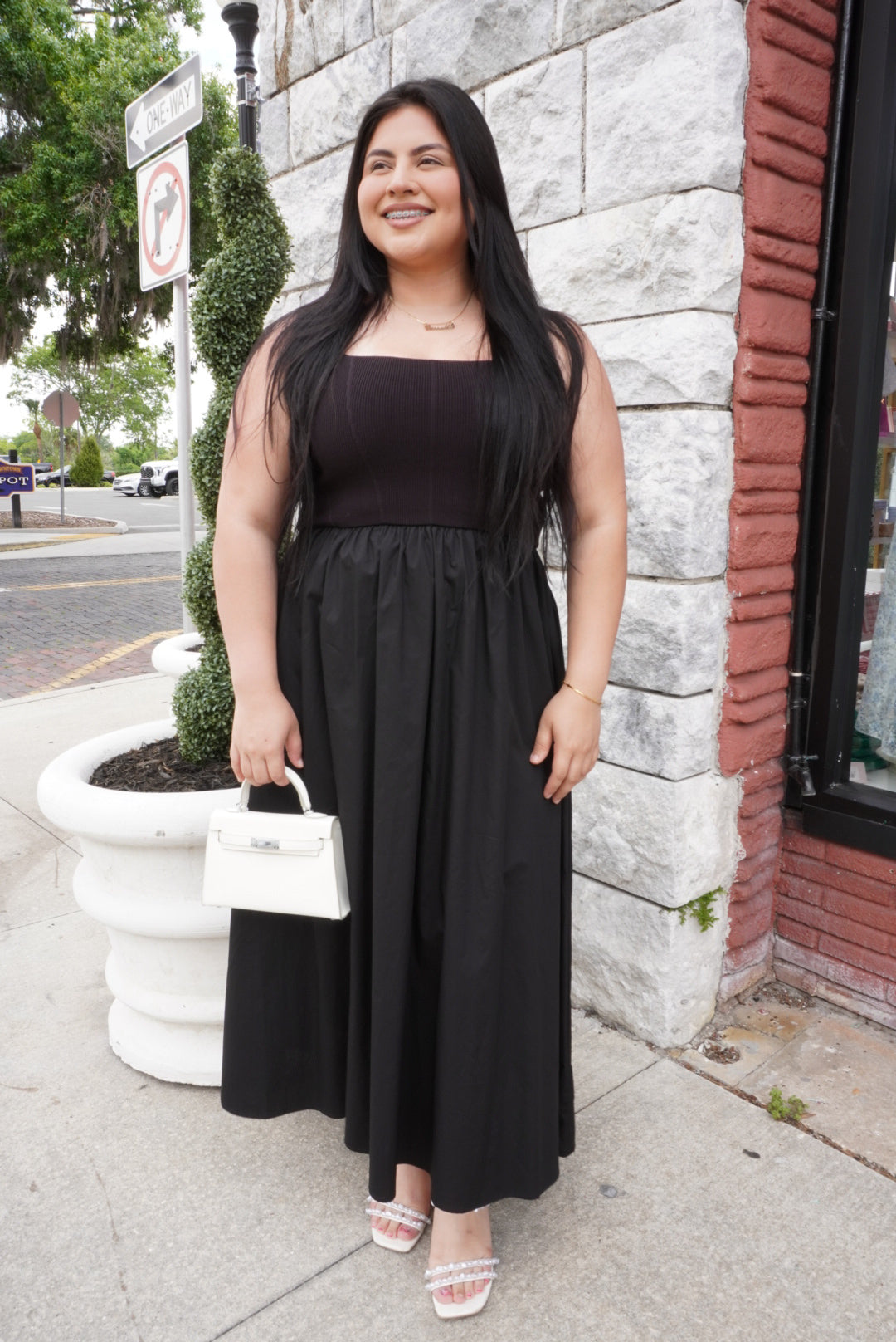- Description: This black dress is the perfect addition to any wardrobe. Its knit top provides both comfort and style, while the long dress design adds elegance to any occasion. Upgrade your fashion game with this versatile and chic dress option.