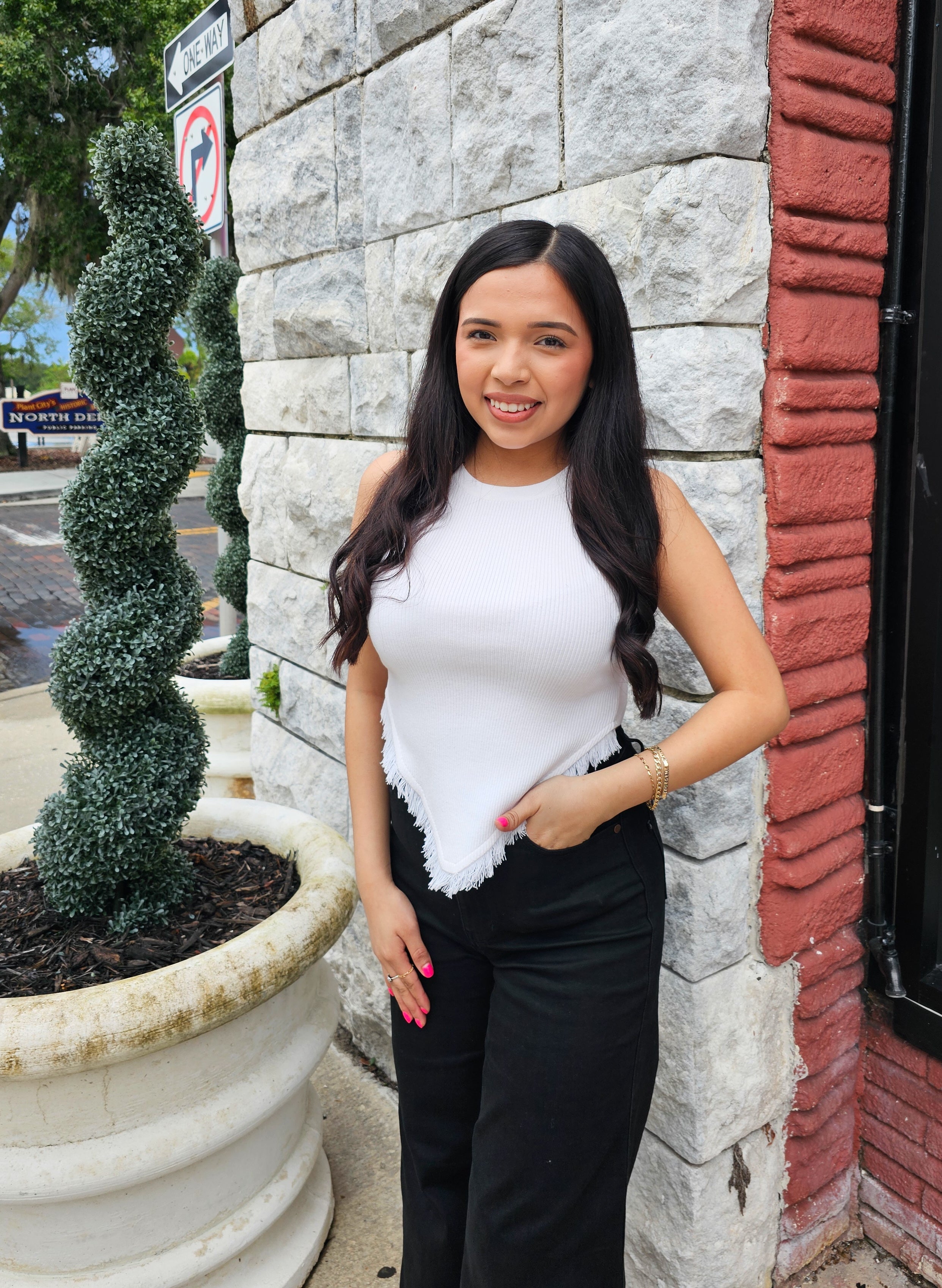 - Description: Meet your new favorite tank for the spring/summer season! This Tessa Hem Knit Tank perfectly embodies the trendy, chic, and edgy aesthetic. Embrace the warmer weather with this stylish addition to your wardrobe.