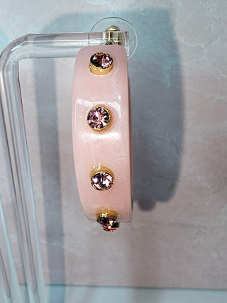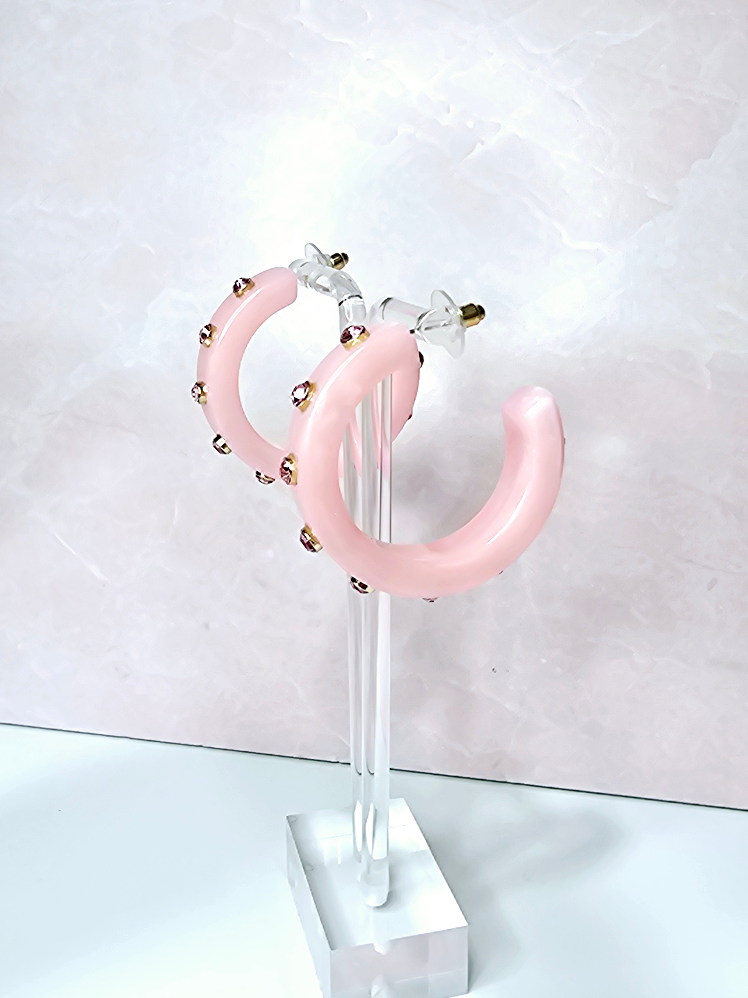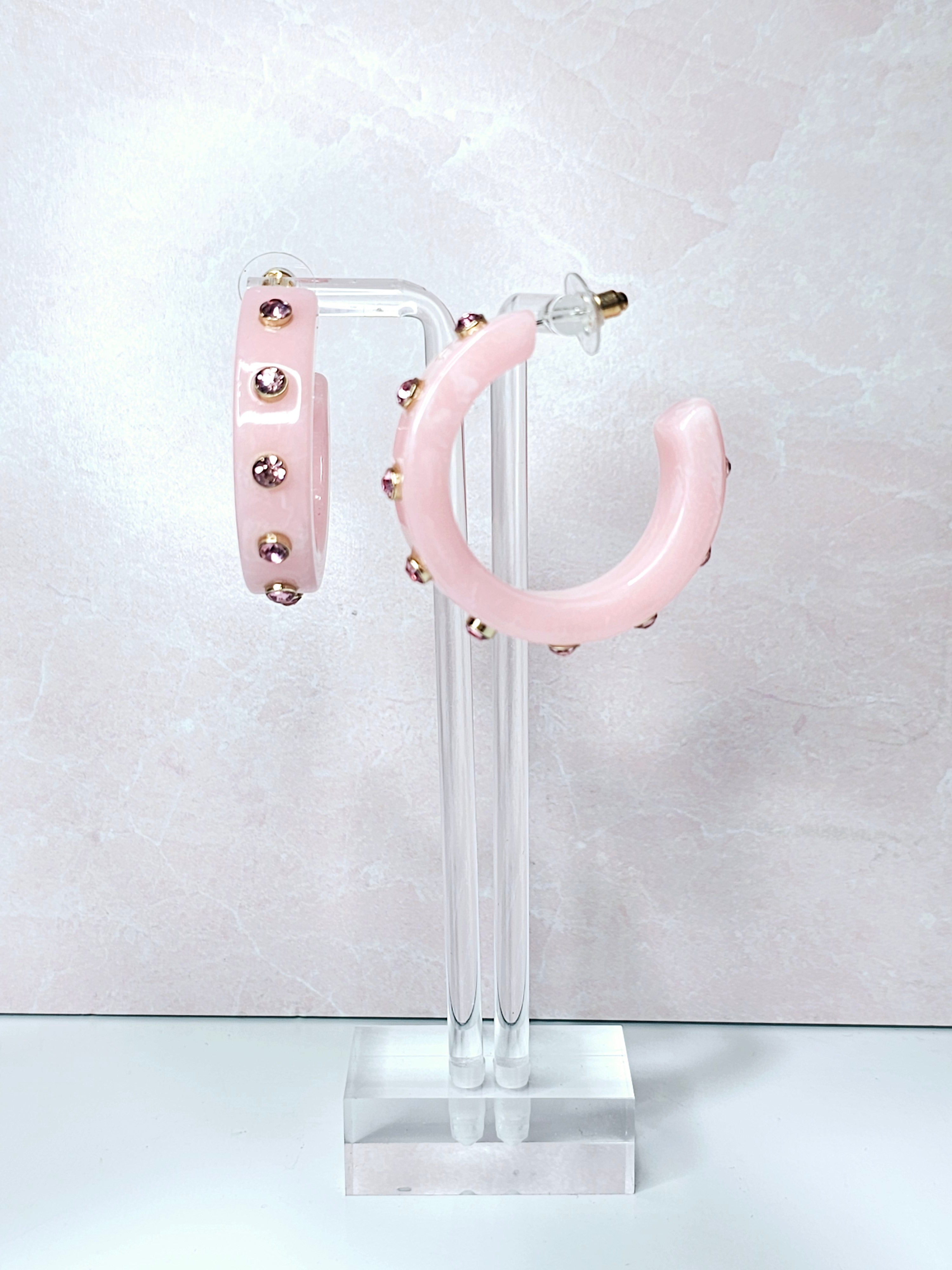 • These elegant Dance With You Earrings in Pink boast a chunky hoop design, accented with a beautiful marble detail and shimmering silver rhinestones. The open back adds a modern touch to this classic accessory. Elevate any outfit with these statement earrings.