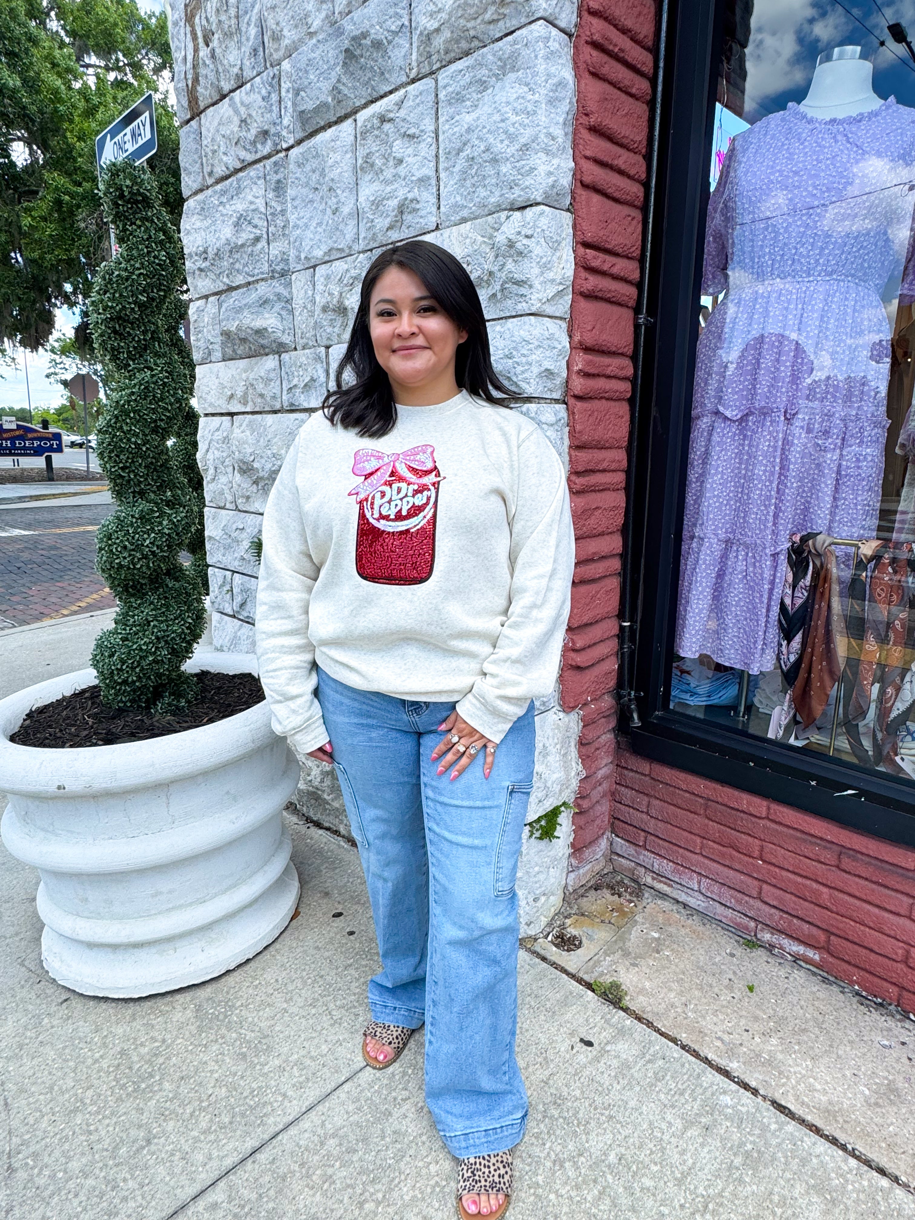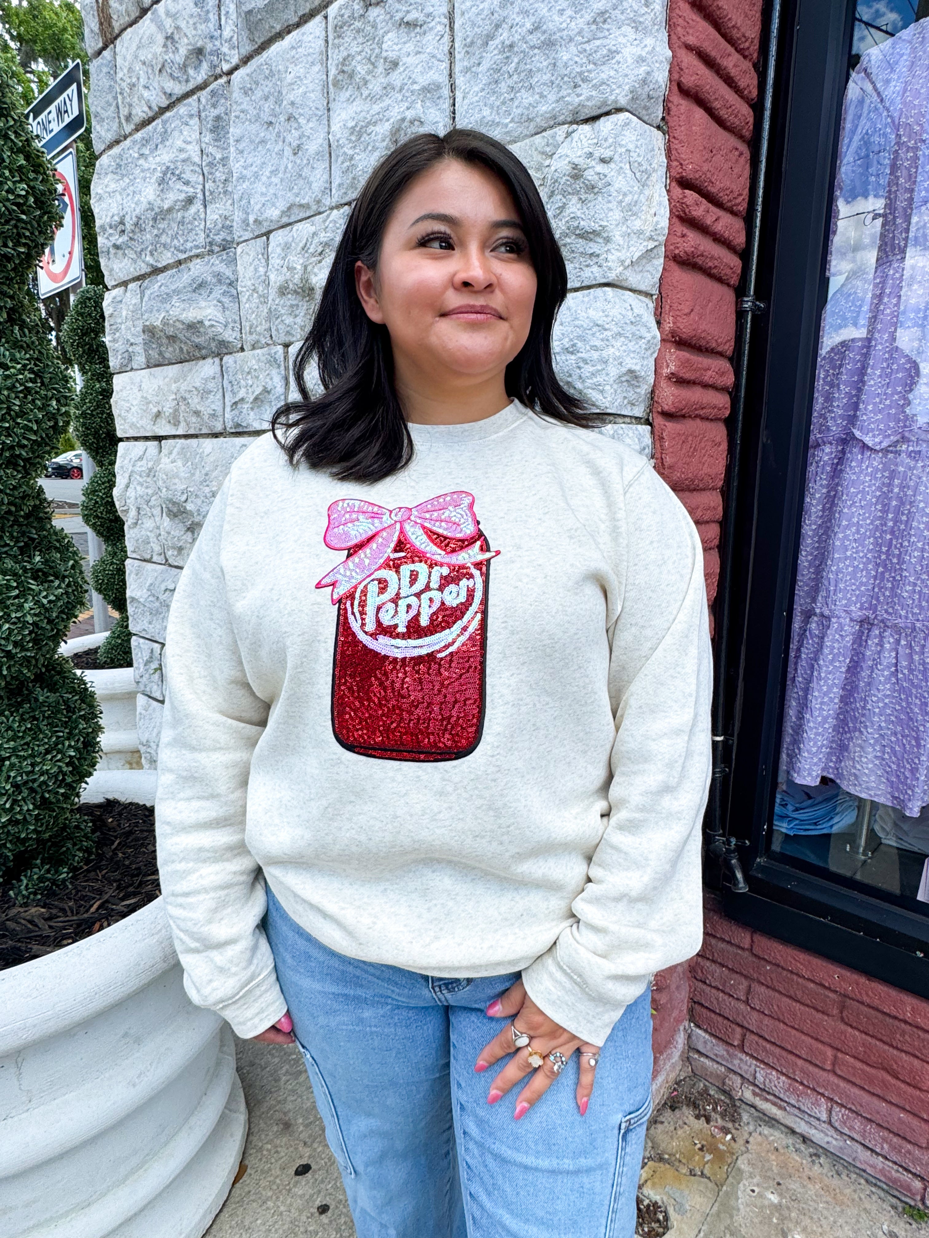 - Description: This cream sweatshirt features a round neck and long sleeves, with the iconic Dr Pepper logo prominently displayed on the front. Stay cozy and stylish while showing off your love for the classic soda. Made with soft and comfortable materials for all-day wear.
