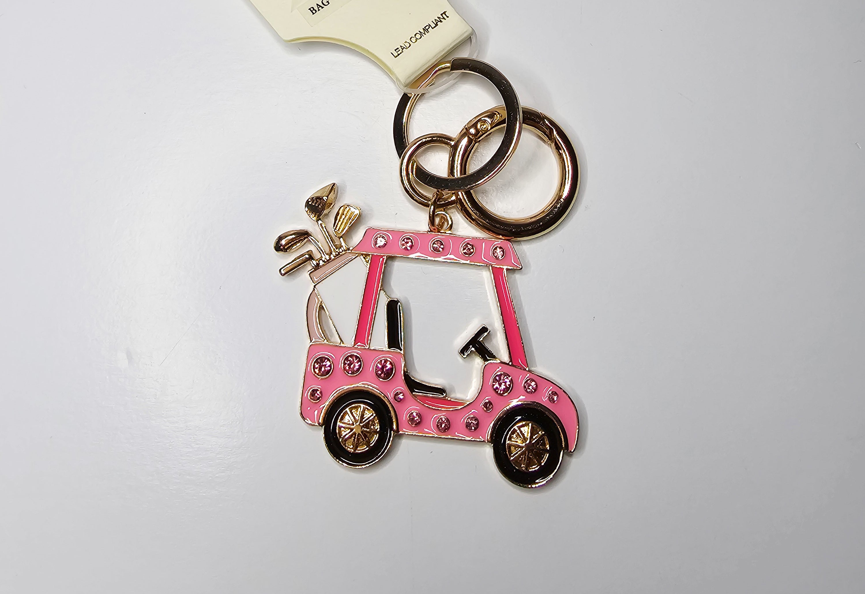 Description:This golf cart keychain features a sleek pink design, making it a stylish and functional accessory for any golf enthusiast. Its vibrant color adds a pop of personality while ensuring your keys are safe and easily accessible. Made with durable materials, it's the perfect addition to any golf bag or keyring.