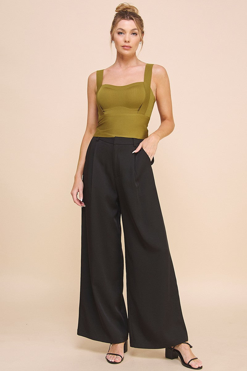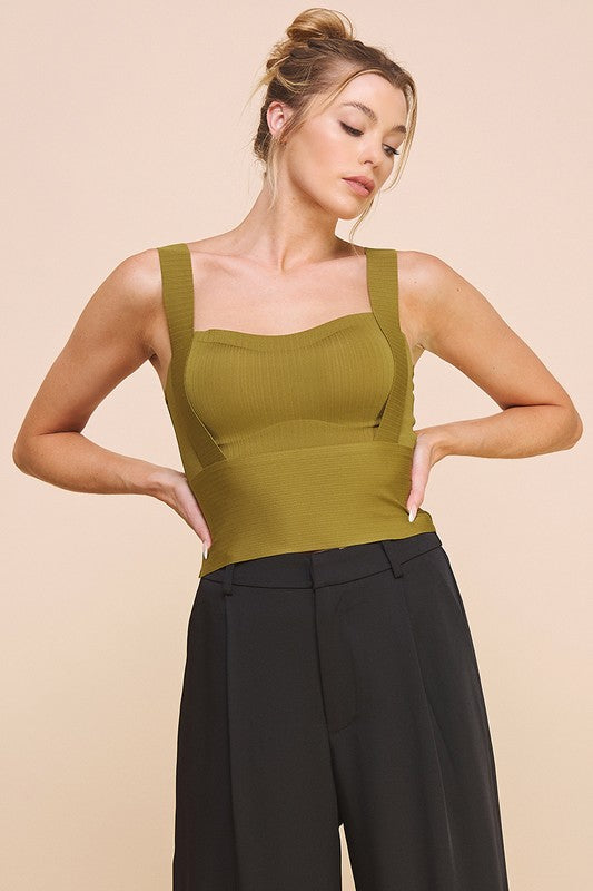 - Description: This Top is a must have you can dress it up or down by adding accessories or even a jacket. Bandage laser cut tank color black one size padded built in bra