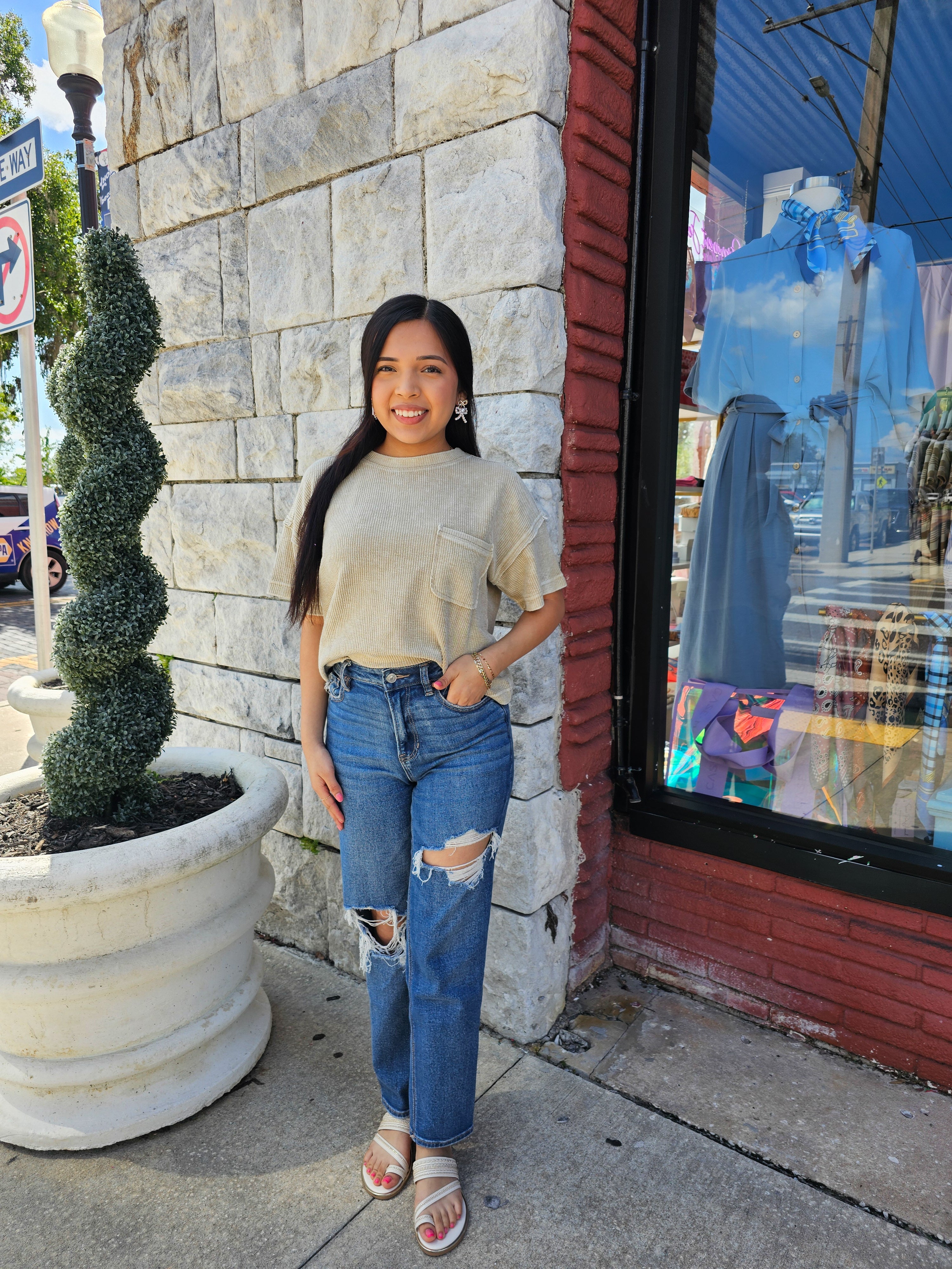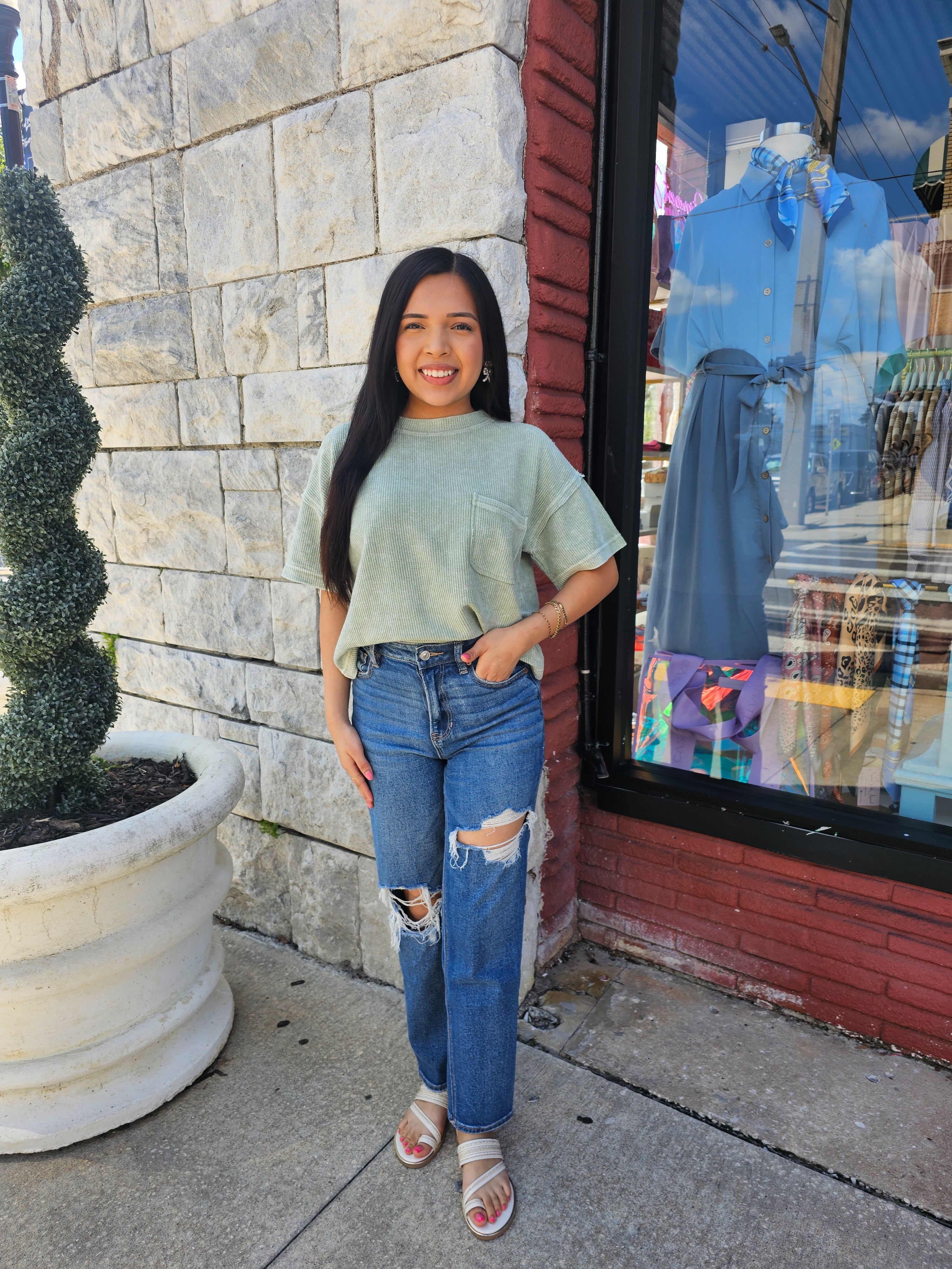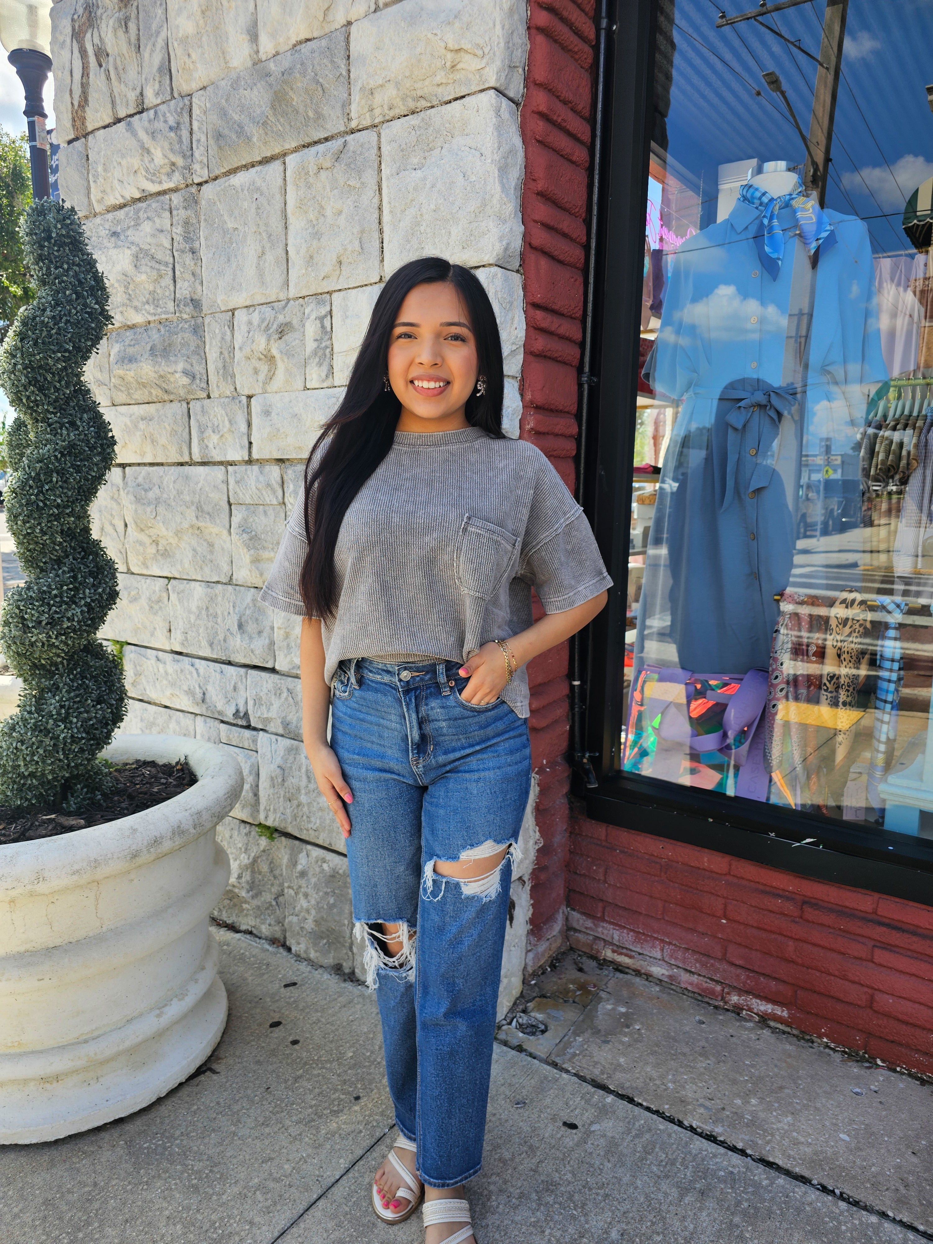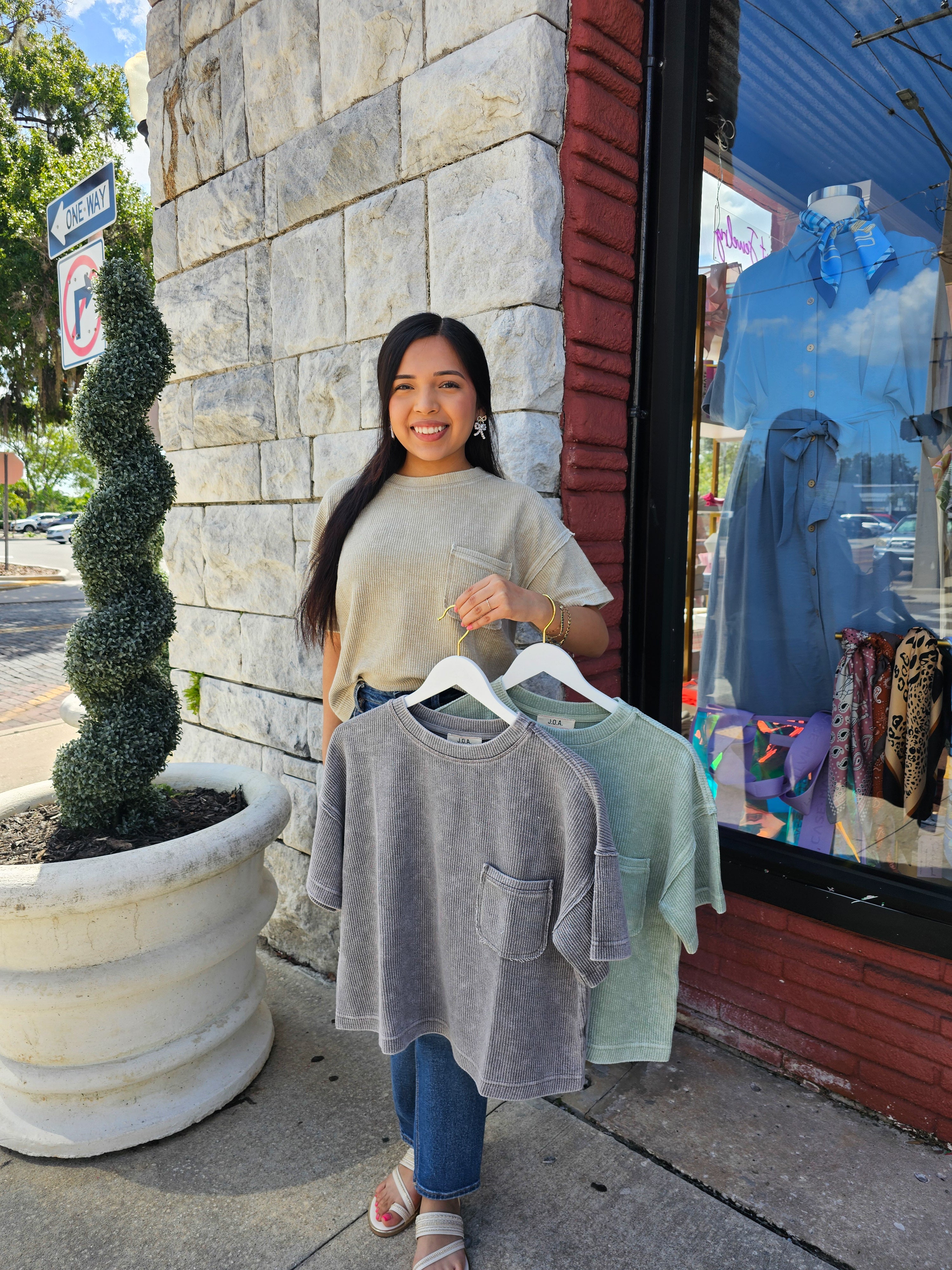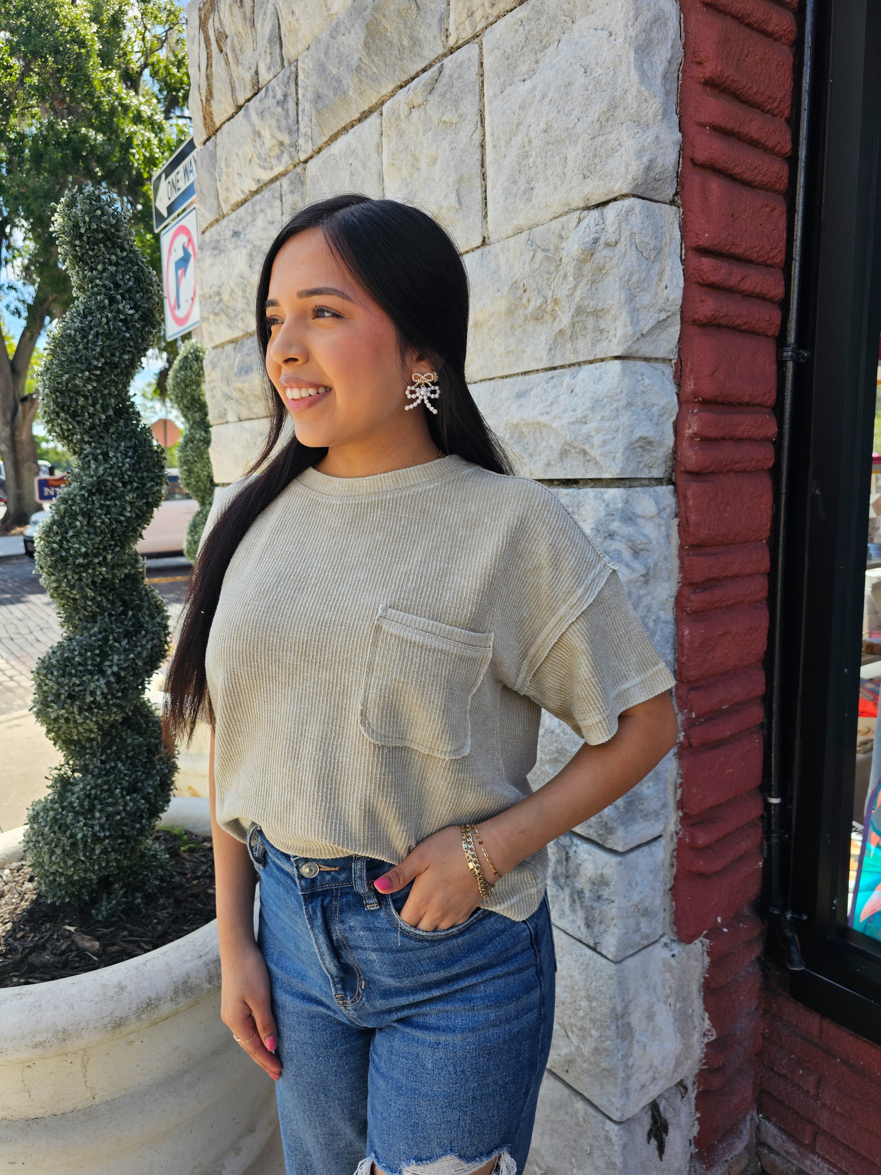 - Expertly designed with a relaxed fit, this top features a round neckline and short sleeves for a comfortable and stylish wear. The dropped shoulder and exposed seam add a touch of modernity to the washed ribbed pattern. With a lined raw edge, this versatile top is ideal for any occasion.