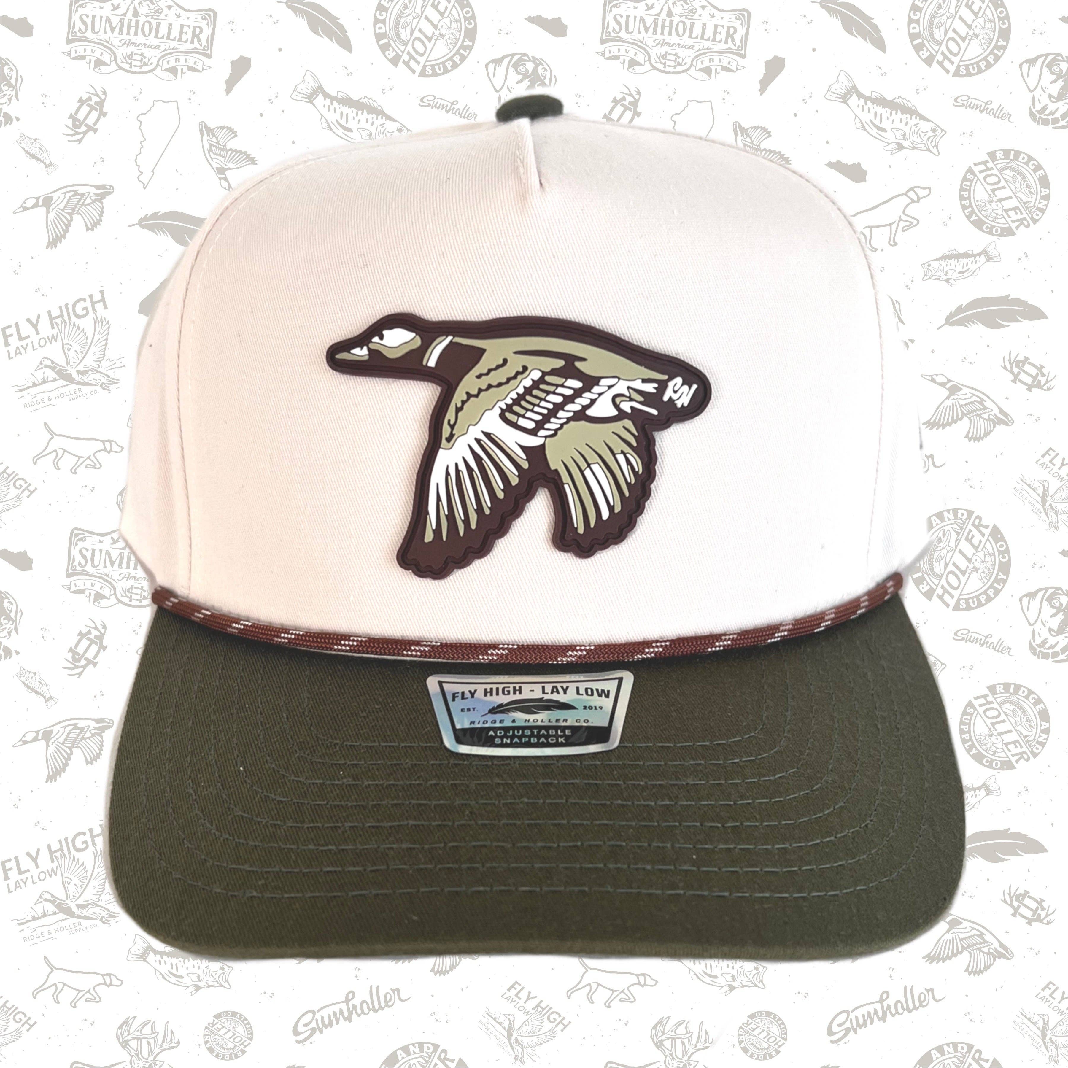 Blend in with the environment in style with our Fly High Trucker Hat in Olive. The cream/olive high crown tall hat features a camouflage design that effortlessly balances fashion with functionality. Perfect for any outdoor enthusiast!