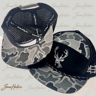Introducing the newest member of the Sumholler family, Sumholler Ruttin'. This 7-panel hat has it all: style, sleekness, waterproof, performance feel and durability, with added perforated holes in the back. Perfect for any outdoor lover, this tall flat bill is a must-have!